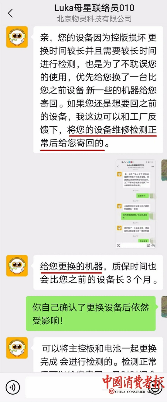 4月22日,李枚加收到被告公司寄来的绘本阅读机器人,但已经不是当初购买的那台,而是“换了一台较新的良品机器”,也就是一台旧机器,理由是“更换后测试依然会受到影响”。