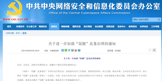 8月27日,监管层面传来重磅消息。中央网信办秘书局近日发布了《关于进一步加强“饭圈”乱象治理的通知》,《通知》称“清朗·‘饭圈’乱象整治”专项行动开展以来,各地落实有关工作要求,围绕明星榜单、热门话题、粉丝社群、互动评论等重点环节,深入整治“饭圈”乱象问题,取得了一定成效。进一步加大治理力度,压紧压实网站平台主体责任,切实突破重点难点问题,不断巩固和扩大专项行动成果,重拳出击解决“饭圈”乱象问题。
