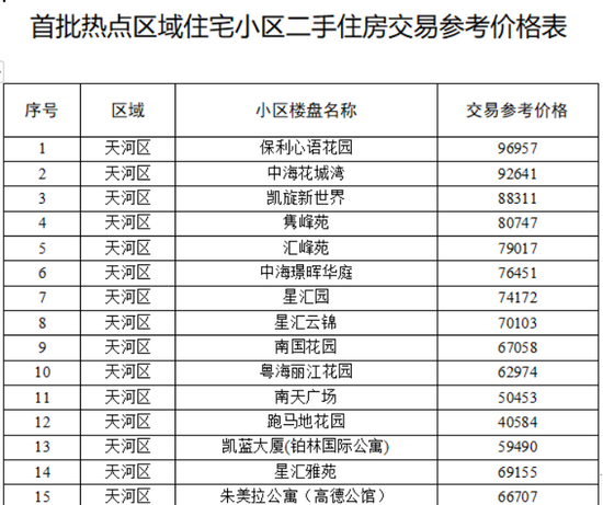 据悉,广州首批发布热点区域成交活跃的小区楼盘共96个,下一步将继续加强对二手住房市场运行的监测分析,按照调控要求结合市场运行情况适时发布其他热点区域小区的交易参考价格。在首批公布参考价格的小区中,没有一个小区二手房参考均上“10万+”。