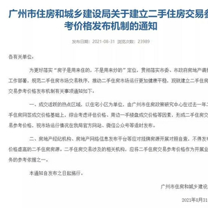 8月31日下午,国新办表示要努力实现全体人民住有所居,31日晚间,广州市住房和城乡建设局就发布了《关于建立二手住房交易参考价格发布机制的通知》(以下简称“通知”)。