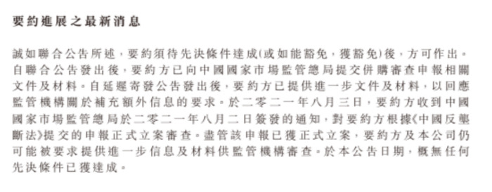 ▲ 市场监管总局在8月3日对该收购进行立案审查