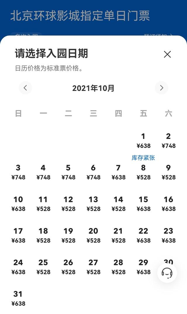 根据北京环球度假区发布的门票价格来看,11月22日之后,北京环球度假区,平日(周一至周四)门票价格为418元,周五至周日价格为528元。在开售半小时内,去哪儿平台上也有1成的用户购买11月中下旬至12月初入园的门票。