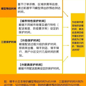 美团公开算法规则显示,美团对配送时间有 “历史数据模型估算时间”“城市通行状态特性下估算时间”“出餐到店取餐等配送各场景累加估算时间”和“配送距离估算时间”四种算法。