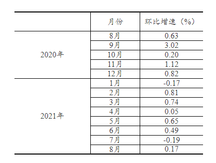 根据季节调整模型自动修正的结果,对2020年8月份以来的社会消费品零售总额环比增速进行修订。修订结果及2021年8月份环比数据如下: