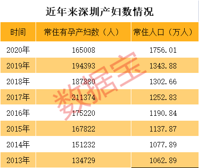 近几年,该数据有所下滑。深圳市卫健委年度卫生统计提要数据显示,2018年全市有孕产妇相比2017年大幅下降2万多,降幅超11%;2020年全市有孕产妇相比2019年大降近3万,降幅超15%。考虑到深圳常住人口几乎连年大幅增长的情况,实际出生率可能更加不乐观。