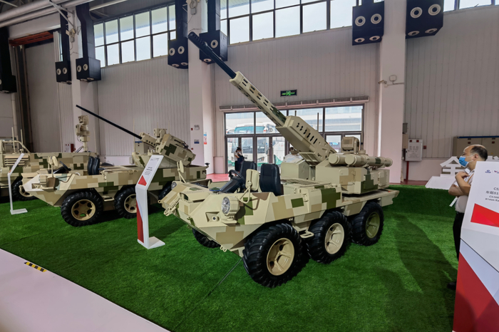 中国兵器装备集团展示的,装备有45毫米埋头炮系统和两枚反坦克导弹的6x6“山猫”系列轮式平台