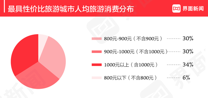 今年最具性价比旅游城市Top50的旅游人均消费为940元,去年榜单的人均消费为1002元,相比去年下降了6.2%。