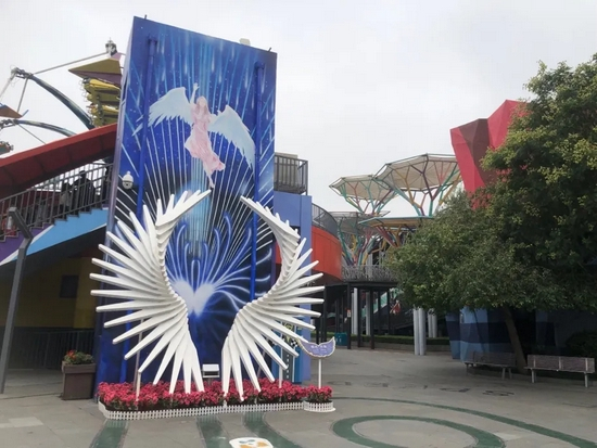 相比之下,欢乐谷几乎是这些特征的反面——它没有买下任何成熟的、家喻户晓的IP,演出人员极少,而且采用“轮岗制”,不需要演员代入角色,只要穿上特定的演出服和路人合影即可。凯源说,他和学弟想发朋友圈时,发现园区里找不到任何可以拍照打卡的地方:“要么就是太卡通,要么就是比较老了……我们想要798那种涂鸦墙,街头一些的,但是大部分(打卡点)都很尴尬。”