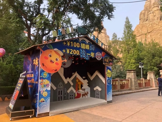 399元的“年卡”是欢乐谷最畅销的销售模式:地铁站正对面的广告牌、园区门口、园区内的每个休息区,到处都能看到醒目的广告语——“+¥100错峰嗨,+¥200浪一年”,而且随走随办。潘潘是进了园区以后才决定升级年卡的,“我想着‘来都来了’,玩两次就能回本,还不如办年卡。”