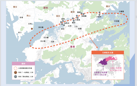 还是用流浮山举例,施政报告中说,初步估计,流浮山及尖鼻咀一带有潜力划作创科用途的土地,可容纳6000至8000个与创新科技应用相关的工作职位,约等于一个数码港的规模。此外,施政报告提出北部都会区发展,将增加两条全新铁路项目,共在香港增设10个新车站。当其中洪水桥往深圳前海的港深西部铁路走线中,除了设洪水桥站外,亦会在厦村及流浮山设车站,并接驳到深圳。