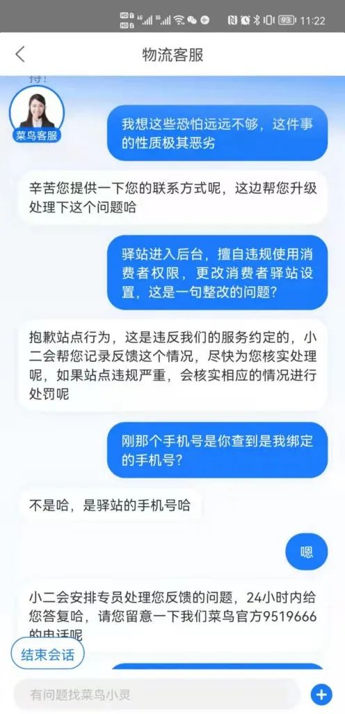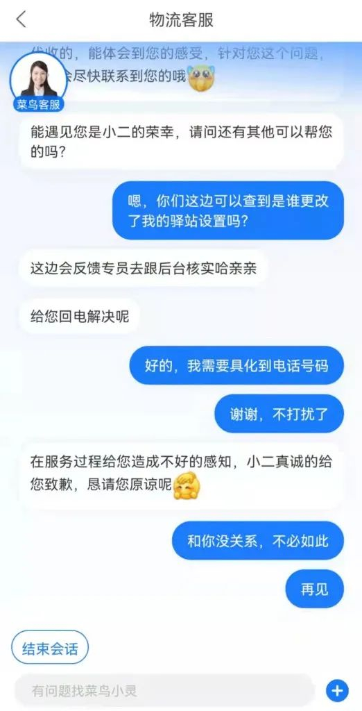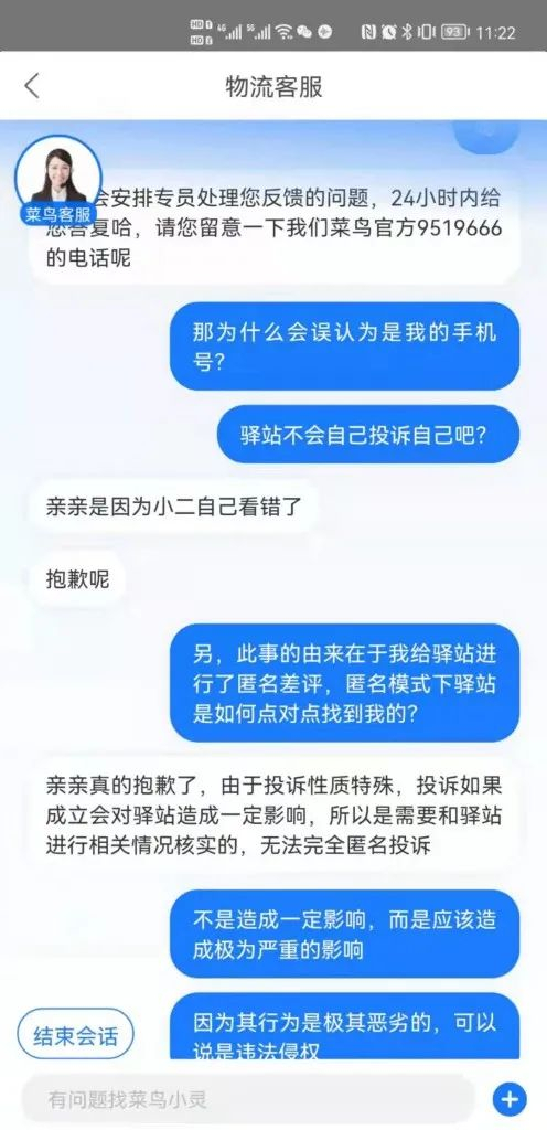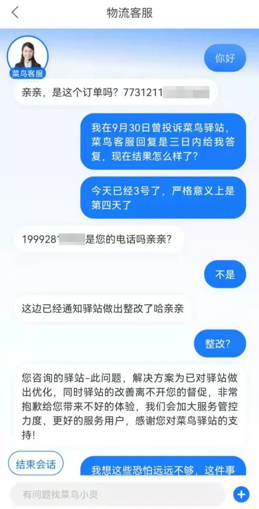 在杜先生与菜鸟客服沟通对话中,华商报记者看到,在线客服称,已经通知驿站做出整改,由于投诉性质特殊,投诉如果成立会对驿站造成一定影响,所以是需要和驿站进行相关情况核实,无法完全匿名投诉。