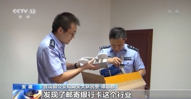 含山县公安局经侦大队大队长 朱虹键:经过审查,发现他们是在被抓获的前一天,刚刚寄了一个包裹到广东省中山市,这个包裹里面是有十套新办的银行卡四件套,在他们手机的视频和照片里都能清楚地反映。