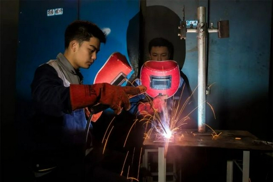 中职学生在进行焊接训练