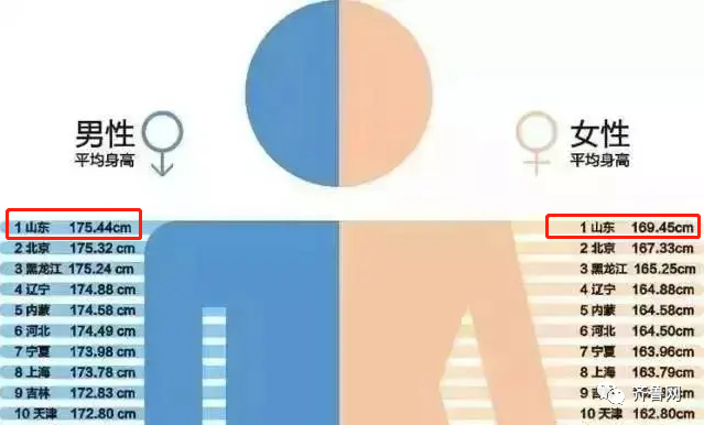 网上有一张图超级火,网传山东男性平均身高为175.44cm,女性平均身高为169.45cm。