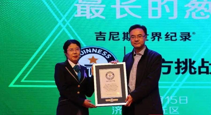 在去年的11月15日,济南章丘绣惠街道王金村葱农苗老师种出的大葱,以2.532米的大高个儿打破了吉尼斯世界纪录。