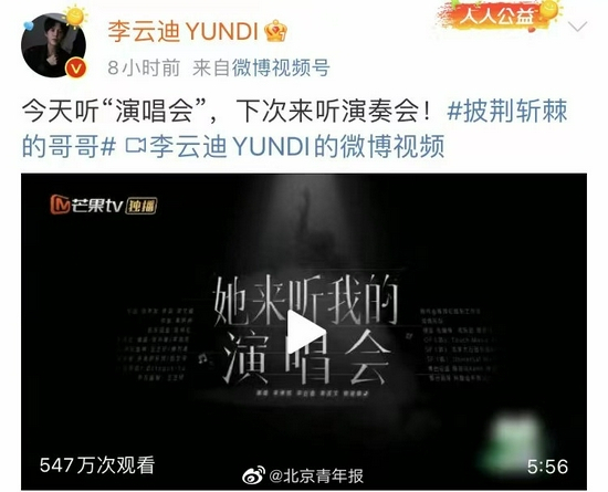 #李云迪嫖娼被拘# 8小时前还在发微博 节目方尚未回应】21日,有消息称李云迪疑似涉黄被抓,他作为常驻嘉宾参与的热门综艺《披荆斩棘的哥哥》对于他的画面也进行了剪辑。中午,李云迪迅速发博辟谣,他发了一段在节目中表演的视频,并配文“今天听演唱会,下次听演奏会”,向粉丝承诺还会有更多的表演。#朝阳群众#