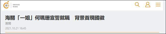 (观察者网讯)“何珮珊今早宣誓就任,现场背景首见一个大型国徽。”在今日(21日)香港海关新任关长何珮珊的宣誓就任现场,港媒注意到了与以往不同的地方。