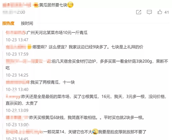 而这还算是便宜的。据网友透露,广州有菜市场的青瓜10元一斤。