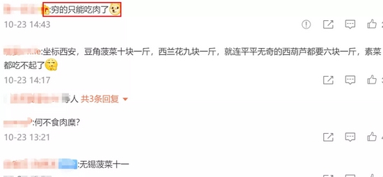 有网友甚至调侃:穷的只能吃肉了