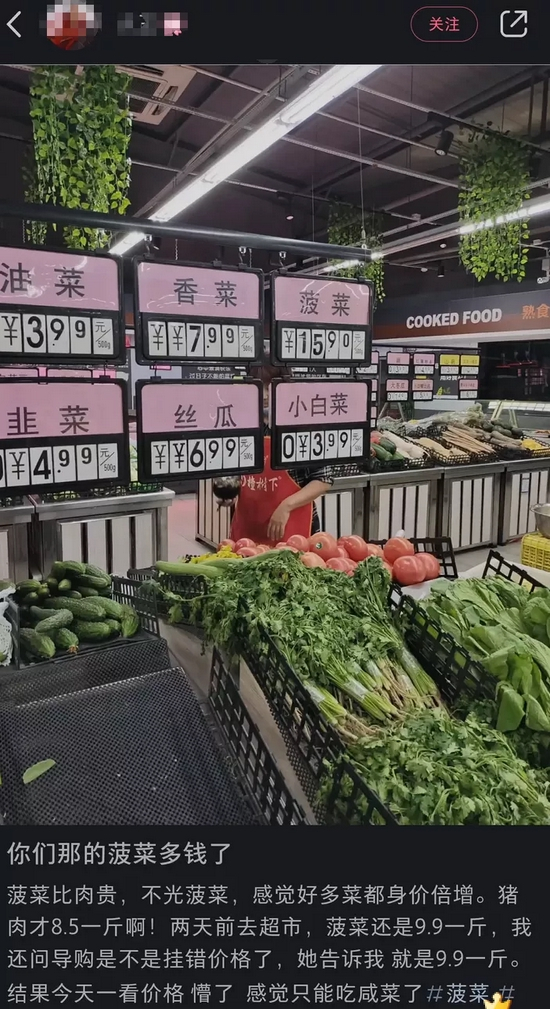 季节性、雨水等多重因素导致菜价上涨