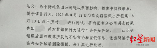 对此,中储粮包头直属库在开除小李的红头文件中指出,经内蒙古分公司纪委深入调查后确认,小李在个人微博发布的问题与事实不符,混淆视听,给社会造成歧义,给中储粮集团公司造成负面影响,损害中储粮形象,属于诬告行为。而小李向红星新闻表示,“我作为单位福利分发人员、档案管理员,所发布信息均为真实信息并有相关作证材料。”