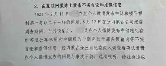 10月21日,红星新闻联系到该网友,证实其身份为中国储备粮管理集团有限公司下属包头直属库有限公司(以下简称“中储粮包头直属库”)前员工小李(化名)。小李告诉红星新闻,拒绝辞职后,单位成立联合调查组,并在未宣读处分决定前让其在白纸上签字确认,甚至还把其妇科疾病写在红头文件中当众宣读并传阅。小李不同意签字,最后遭到强制开除。