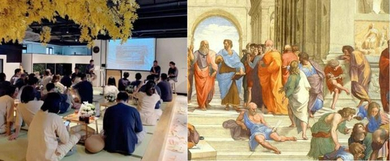 这间洗浴中心竟然还时常举办文艺沙龙,从主讲人、主持人、听众,都洗香香后穿着浴衣坐在榻榻米上听讲座,简直就像古希腊的雅典学院。