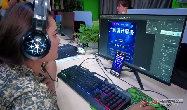 9月26日,在喀什经济开发区古城众创空间,工作人员正在用电脑进行广告设计。□石榴云/新疆日报记者 秦鹏摄