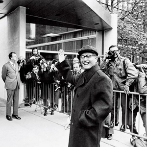 1971年11月12日,美国纽约,中国代表团团长、外交部副部长乔冠华在联合国总部向记者们挥手致意。图/人民视觉
