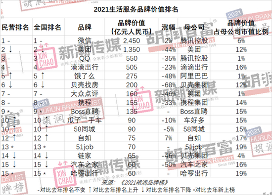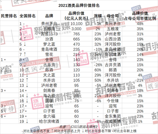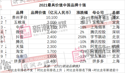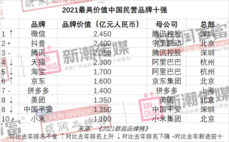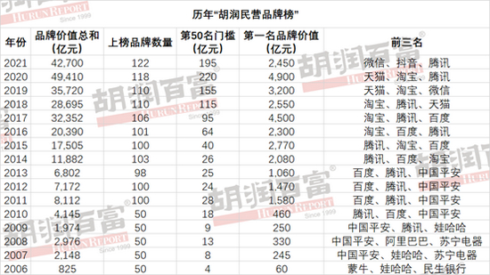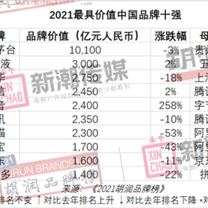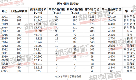 胡润研究院结合了公开经济数据和对消费者的调研结果进行品牌价值综合评估。