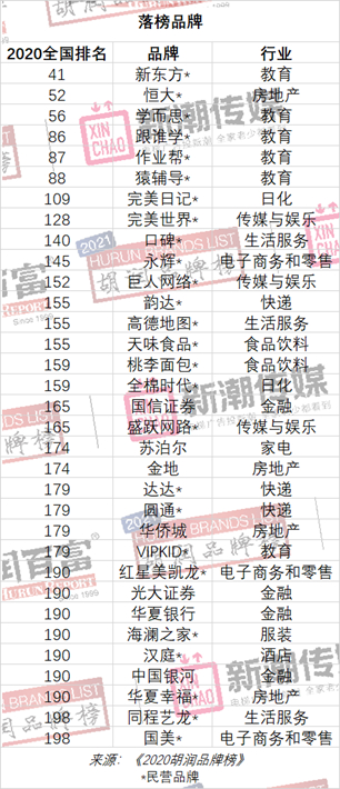 新东方、学而思等6个教育品牌落榜,恒大、金地等4个房地产品牌落榜,金融行业也有国信证券、光大证券等4个品牌落榜