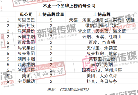 “阿里巴巴、字节跳动虽然品牌很出名,但因为不是面向消费者的品牌,因此不在我们品牌榜的调研范围内,而它们旗下面向消费者的品牌如天猫、抖音,则在我们榜单上。”胡润补充。