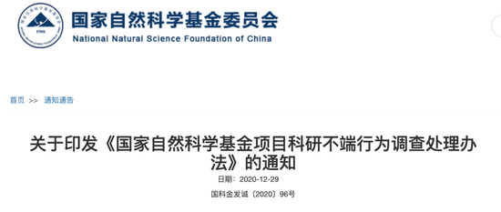 2020年底,国家自然科学基金委员会发布了《国家自然科学基金项目科研不端行为调查处理办法》,其中提到,科研人员应当遵守学术规范,恪守职业道德,诚实守信,不得在科学技术活动中弄虚作假。