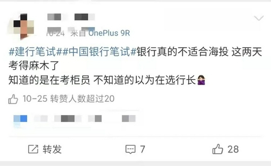 除了题目难以外,银行考试系统崩了也经常在社交媒体引发热议。
