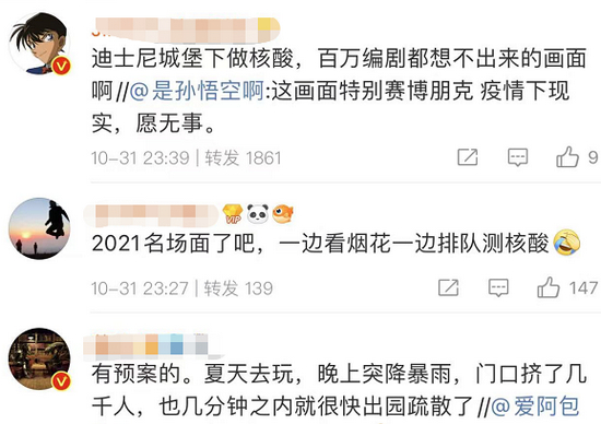 面对突如其来的疫情防控,截至31日23时,上海迪士尼乐园内几万游客核酸采样完成,同时,万圣节巡游和烟花秀依然照常。
