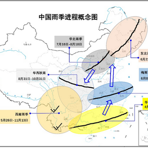 中国雨季进程概念图 图片来自国家气候中心