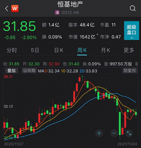 尽管恒基地产看好未来数年的发展,但资本市场对其成为新地王的反应并不热烈。11月4日,恒基地产股价报收31.85港元,下跌2.9%。