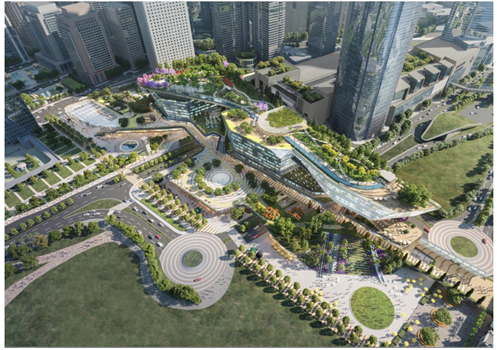 三座建筑之间,将通过一个名为“HorizonPark”的平台串连起来,公众可在平台上多角度眺望中环景致和维港景色。平台将以植物营造空中森林,同时为公众提供草坪、缓跑径及户外空间。
