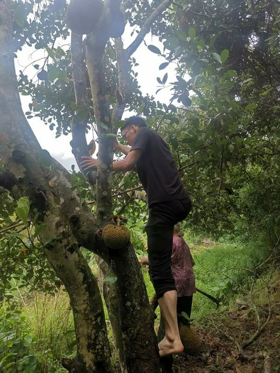 唐尚珺爬上树摘菠萝蜜