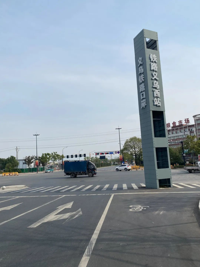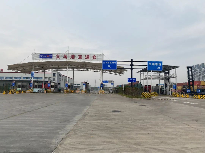 义乌港位居义乌口岸路和银海路交叉口,是义乌小商品出口的海关监管主要场地。新冠疫情前,这个国际级内陆港,每天都有1000个以上的集装箱往来于“义甬舟”(义乌港-宁波舟山港)之间。