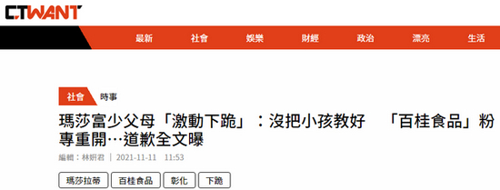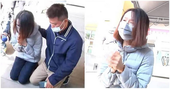 张姓嫌犯的父母下跪道歉。图自台湾“中时新闻网”