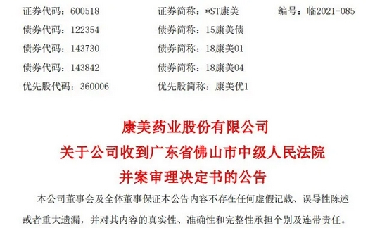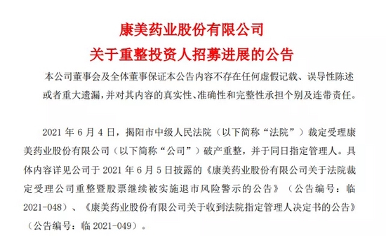 目前*ST康美已经进入破产重整程序。11月2日晚间,*ST康美披露了重整投资人招募进展。