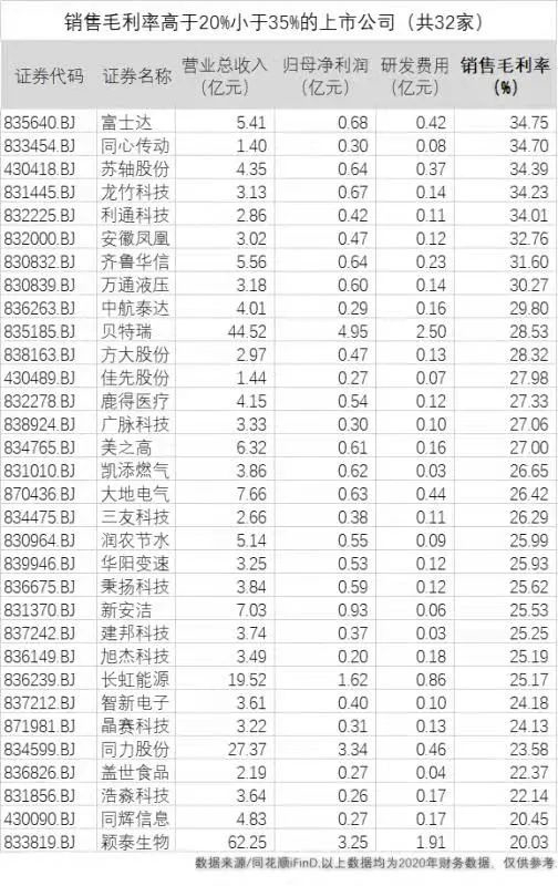 20%≤销售毛利率<35%的公司合计32家;