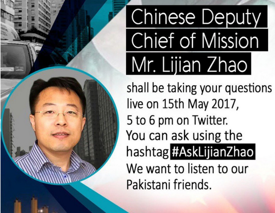 当时,赵立坚就建立起坦诚、直率的风格。他会在第一时间转发、回复有关CPEC的内容,包括回应质疑。他还曾通过“AskLijianZhao”这个标签向网友广泛征集关于CPEC和中巴关系的问题,再专门开设推特直播为大家答疑解惑,因此在巴基斯坦圈粉无数。