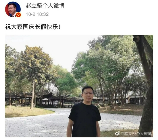 ·赵立坚在微博中晒出陪伴父母游玩的图片。