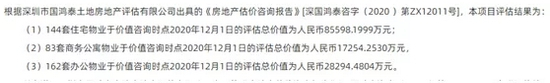 根据深圳市国鸿泰土地房地产评估有限公司出具的《房地产估价咨询报告》[深国鸿泰咨字(2021)第08074号],本项目评估结果为: