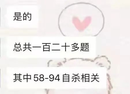 “总共120道测试题,58—94题和自杀相关,甚至,还毫不避讳地向未成年人展示各种可能的自杀方式……”