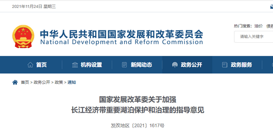 国家发改委发布《关于加强长江经济带重要湖泊保护和治理的指导意见》