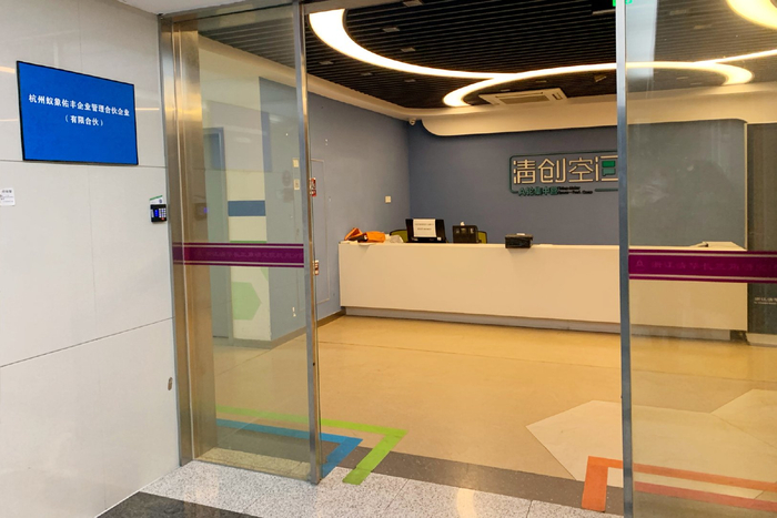 或许是因为已过下班时间,区域内空空荡荡,办公人员寥寥无几。记者进入查看时,并无相关人员前来阻拦或询问,细探之下发现,原来浙精人服位于联合办公工位出租的“清创空间-A轮集中营”内。
