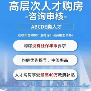 此外,按目前杭州市关于高层次人才的相关政策,经认定的A类人才,在杭购买首套住房可免摇号;经认定的B、C、D、E类人才及符合条件的相应层次人才,在杭购买首套住房,可在新建商品住宅公开摇号销售时,按不高于20%的比例优先供应。简单说来就是,一经认证为杭州高层次人才(含ABCDE类),相当于获得了一次不受限购政策约束的优惠购房资格。